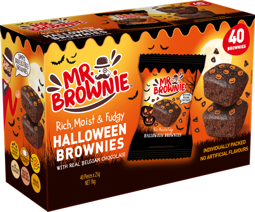 Deliciosos brownies de chocolate con topping de caramelos en forma de terroríficas calabazas. ¡Atrévete!